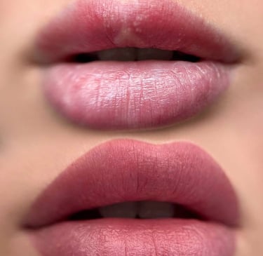 Le maquillage semi permanent des lèvres est réalisé selon une technique de rouge à lèvres délicate, utilisant uniquement des pigments minéraux.